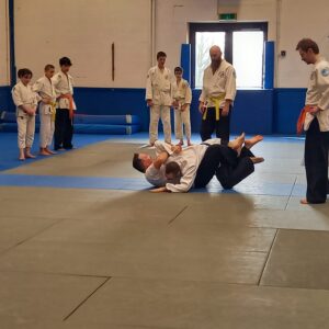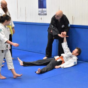 Le cours spécial de jiu-jitsu qui s’est tenu le 10 mars 2024 au JJKBCV semble avoir été une expérience enrichissante et intensive pour les participants. Ces sessions, organisées environ une fois par trimestre, visent à approfondir les connaissances des pratiquants pour les préparer au passage de grade. Cette fois-ci, l’accent a été mis principalement sur les techniques de clés au sol, avec en alternance la révision des techniques sur agression, une attention particulière étant portée sur les situations de self-défense, notamment lorsque l’on est coincé contre un mur.