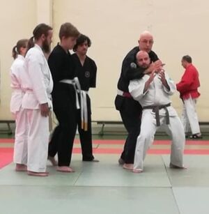 Le lendemain des compétitions stage dès 9h30 ou notre Directeur technique Noisette Gérard 7ièm Dan était en charge accompagné de son uké Collin Anthony pour une prestation de six heures.