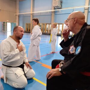En effet, la veille le responsable technique du Seishan Karaté Club Devant-Le-Pont Sylvain Tuttolomondo l’avait invité à cet évènement afin de contrôler le justesse des techniques liant le Wado Ryu au Jiu-Jitsu ainsi que les mouvements de bases du karaté présent dans les techniques de bases du Jiu-Jitsu.