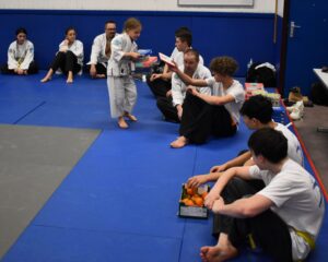 Saint-Nicolas a pensé à tout le monde ! Les professeurs ont également été récompensés pour leur investissement tout au long de l’année, ainsi que les autres enfants qui n’étaient pas présents sur le tatami ce jour-là. Personne n’a été oublié dans cette distribution festive.