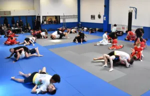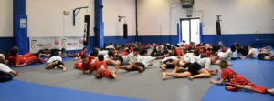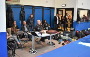 Après un échauffement commun sous la direction de Pierre Locht et Kevin Dessart, les stagiaires se sont répartis dans les 2 salles afin de bénéficier d’un entrainement plus individualisés.