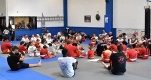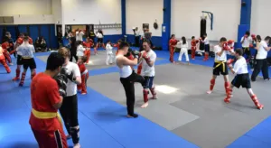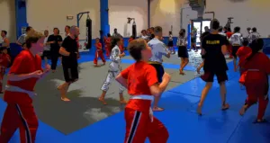 Plus de 70 participants à notre stage de boxe pieds poings qui se déroulait au Hall Omnisports de Visé, les deux salles ont du être occupées pour ne pas que l’on se cogne 😉 .