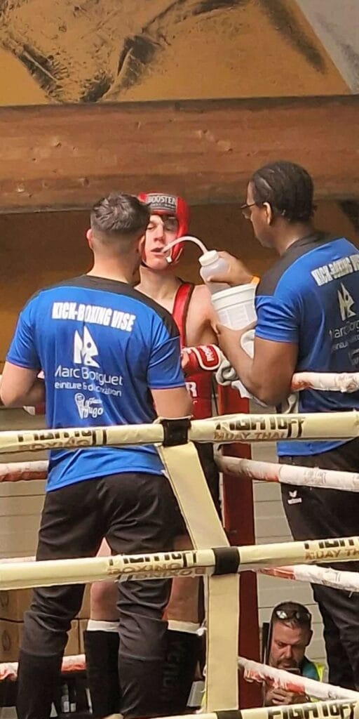 Son papa, Olivier le soutient beaucoup au niveau de la compétition et il faut dire que c’est un élément particulièrement doué à l’aise, dans toutes les techniques pieds-poings.
